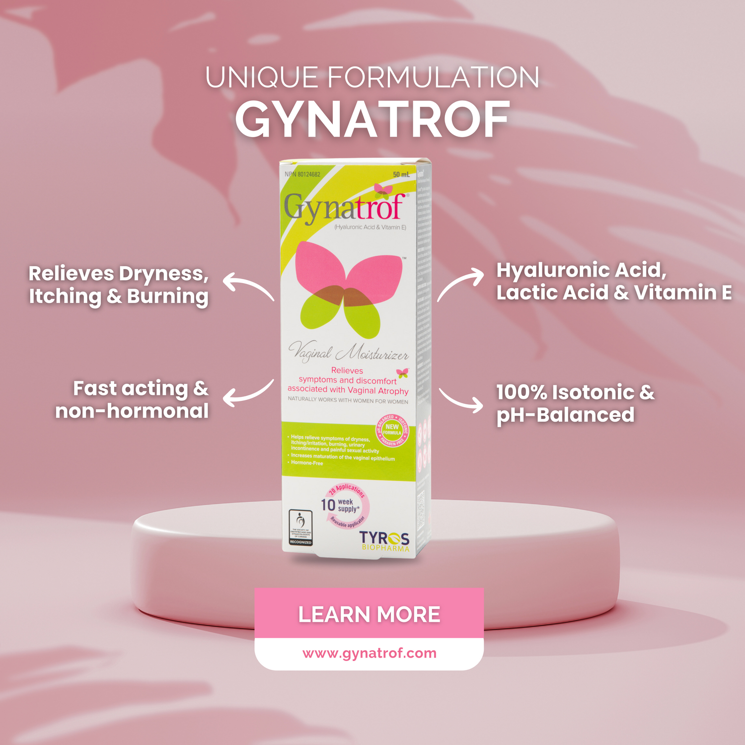 You no longer have to suffer in silence and let vaginal dryness drive you crazy. You now have an option to deal with vaginal dryness and conquer the pain and discomfort it causes. If you need an effective and clinically proven vaginal dryness treatment, then GYNATROF is the perfect choice.