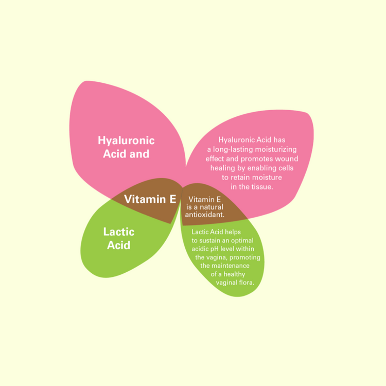 - Alleviates dry skin and general discomfort resulting from factors like menopause, pregnancy, breastfeeding, hormonal changes, contraceptive use, exercise, intimate activities, thinning vulvar tissue, friction, chemical irritation (e.g., soaps and detergents), shaving, or vaginal pH imbalance.
